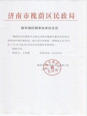 济南市槐荫区社区服务中心拟申请注销登记公告